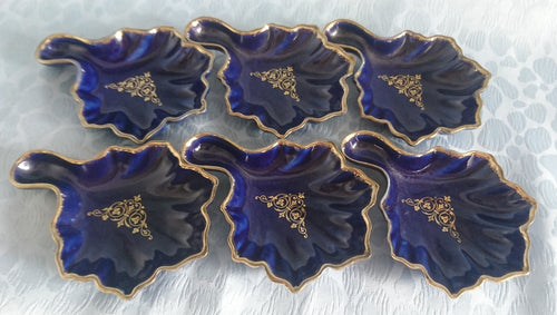 6er Set ABLAGEN BEILAGENSCHÄLCHEN - Porzellan, Blattform Goldrand Wappen Motiv Dekor