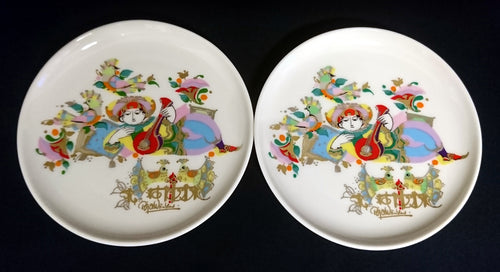 2er Set ABLAGETELLERCHEN UNTERSETZER - Porzellan, Orientalisches Personen Geige Cello Vogel Motiv Dekor, Björn Wiinblad Designer