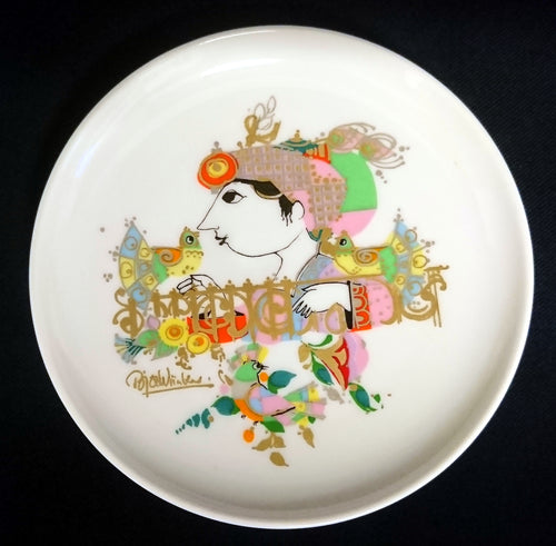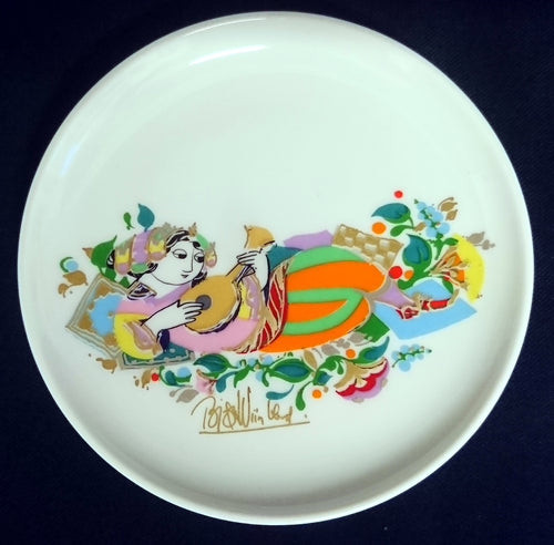 SAMMELTELLERCHEN UNTERSETZER - Porzellan, Orientalisches Frau mit Geige Blumenblüten Pflanzen Motiv Dekor, Björn Wiinblad Designer