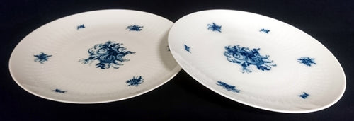 2er Set DESSERTTELLER "Studio Linie" "Blaue Rose" - Porzellan, Rosenstrauß Blumen Relief Dekor, Björn Wiinblad Designer