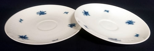 2er Set UNTERTASSEN "Studio Linie" "Blaue Rose" - Porzellan, Rosenstrauß Blumen Relief Dekor, Björn Wiinblad Designer