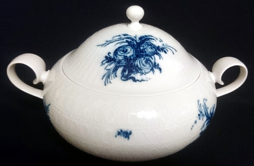 BEILAGEN-TERRINE MIT DECKEL "Studio Linie" "Blaue Rose" - Porzellan, Rosenstrauß Blumen Relief Dekor, Björn Wiinblad Designer