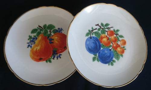 2er Set DESSERT SAMMELTELLER - Porzellan, Goldrand Obst Birnen Pflaumen Motiv Dekor