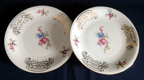 2er Set DESSERTTELLER - Porzellan, Unterschiedliches Abstraktes Blumen Motiv Goldrand Dekor (A+B)