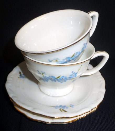 2er Set 2er MOCCAGEDECKE - Porzellan, Goldrand Vergiss mein Nicht Blumenblüten Flora Pflanzen Gewölbter Relief Motiv Dekor