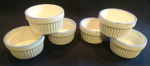 6er Set MUFFIN FÖRMCHEN / SOUFFLE - Keramik / Steingut, Senkrecht Geriffeltes Relief Rand Dekor