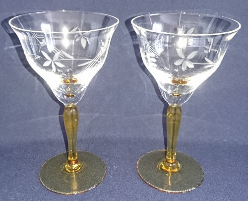 2er Set WEIßWEIN~ GETRÄNKEGLÄSER - Hartglas, Geschliffen Flora Abstrakt Blumenblüten Pflanzen Motiv Dekor