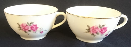 2er Set 2er TEEGEDECKE - Porzellan, Goldrand Flora Rosenblumen Blüten Motiv Dekor
