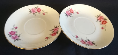 2er Set UNTERTASSEN - Porzellan, Goldrand Flora Rosenblumen Blüten Motiv Dekor