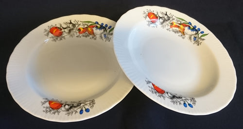 2er Set SUPPENTELLER - Porzellan, Gemüse Kräuter Gewürz Motiv Geriffelter Rand Dekor