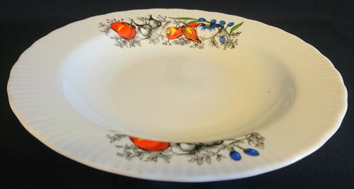 SUPPENTELLER - Porzellan, Gemüse Kräuter Gewürz Motiv Geriffelter Rand Dekor
