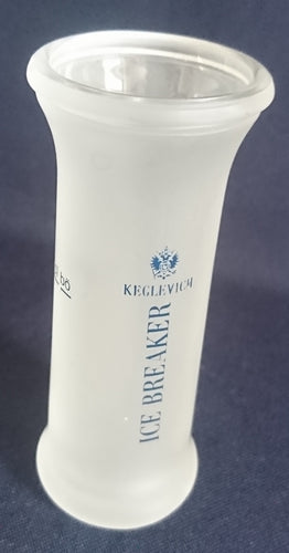 SHORT~ GETRÄNKEGLAS - Hartglas, Aufschrift Keglevich Ice Breaker Firmenlogo Motiv Dekor