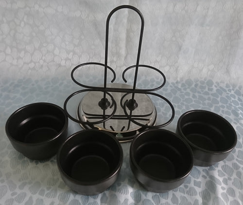5er Set BEILAGENSCHÄLCHEN & SERVIERSTÄNDER - Edelstahl & Keramik , Einfärbiges Modernes Designform Motiv Dekor