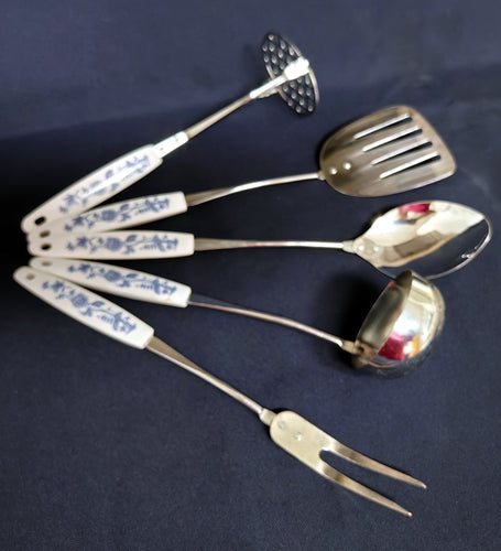 5er Set KÜCHENHELFER - Edelstahl & Kunststoff , Zwiebelmuster Motiv Dekor