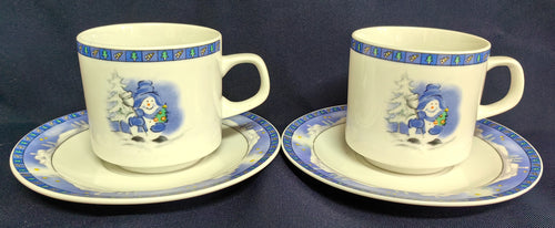 2er Set 2er KAFFEEGEDECKE - Porzellan, Advent Weihnachten Winter Schnee Baum Bäume Rand Symbole Motiv Dekor