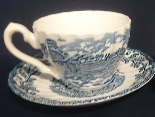 KAFFEETASSE "Country Life" - Keramik / Steingut (Fine Staffordshire Ware), Englisches Landleben Scenen Motiv Dekor, Hand graviert