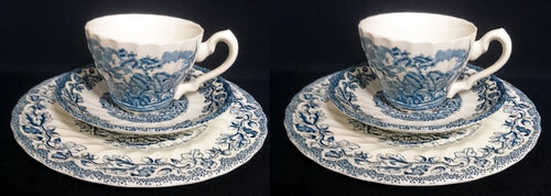 2er Set 3er KAFFEEGEDECKE "Country Life" - Keramik / Steingut (Fine Staffordshire Ware), Englisches Landleben Scenen Motiv Dekor, Hand graviert
