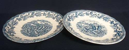 2er Set DESSERTTELLER "Country Life" - Keramik / Steingut (Fine Staffordshire Ware), Englisches Landleben Scenen Motiv Dekor, Hand graviert