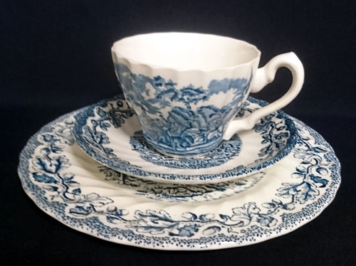 3er KAFFEEGEDECK "Country Life" - Keramik / Steingut (Fine Staffordshire Ware), Englisches Landleben Scenen Motiv Dekor, Hand graviert