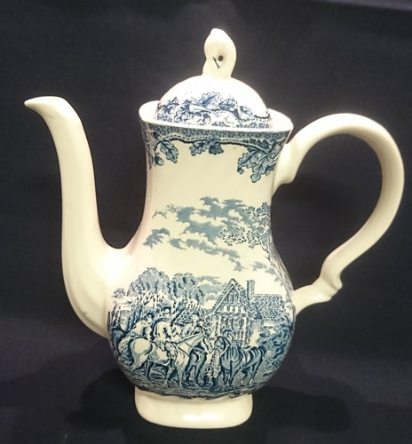 KAFFEEKANNE MIT DECKEL "Country Life" - Keramik / Steingut (Fine Staffordshire Ware), Englisches Landleben Scenen Motiv Dekor, Hand graviert