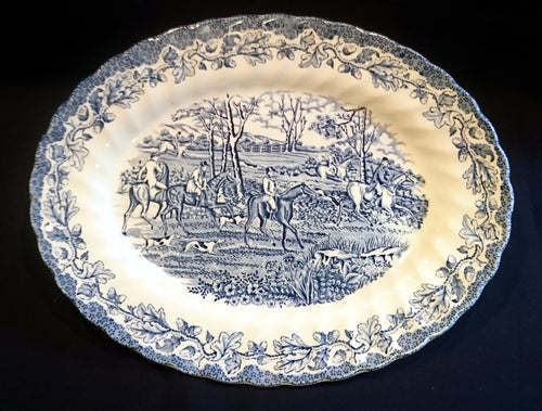 SERVIERPLATTE "Country Life" - Keramik / Steingut (Fine Staffordshire Ware), Ovale Form, Englisches Landleben Scenen Motiv Dekor, Hand graviert