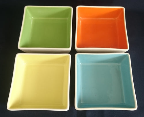 4er Set DESSERTSCHALEN "Villa Loca" - Keramik / Steingut, Zweifärbiges Quadratische Viereck Form Modern Style Dekor