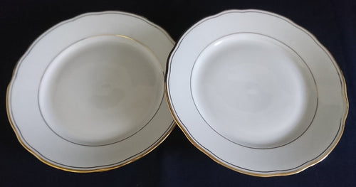 2er Set DESSERTTELLER - Porzellan, Mehrfacher Goldränder Gewölbter Tellerand Dekor