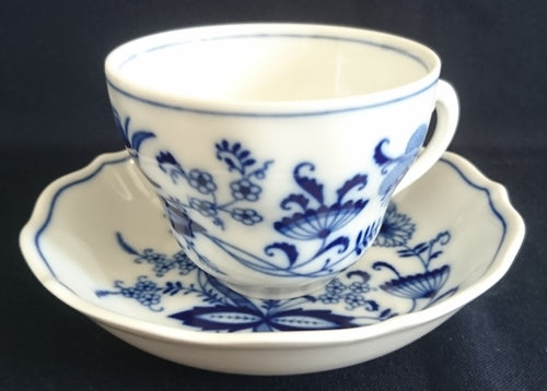 2er KAFFEEGEDECK - Porzellan, Zwiebelmuster Motiv Relief Dekor