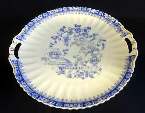 TORTEN- / BEILAGENPLATTE - Porzellan, Runde Form mit Griffen, China Blau Goldrand Relief Dekor