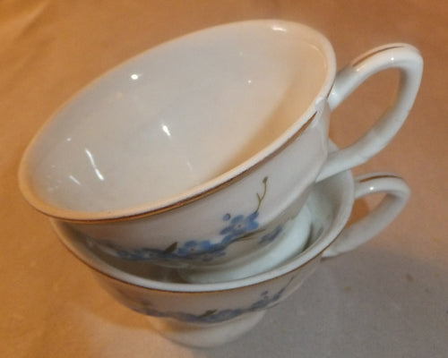 2er Set MOCCATASSEN - Porzellan, Goldrand Vergiss mein Nicht Blumenblüten Flora Pflanzen Gewölbter Relief Motiv Dekor
