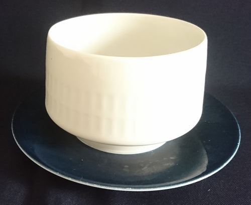 SAUCIER~ BEILAGENSCHALE MIT UNTERTELLER - Porzellan, Breiter Blauen Rand Linien Striche Relief Motiv Dekor