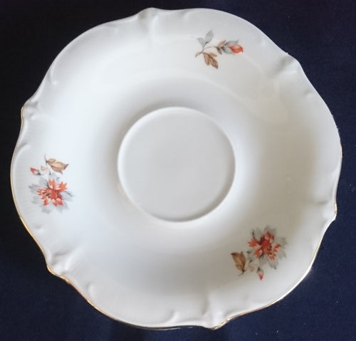 UNTERTASSE - Porzellan, Goldrand Relief Flora Rose Blumenblüten Blatt Blätter Motiv Dekor (nBC)