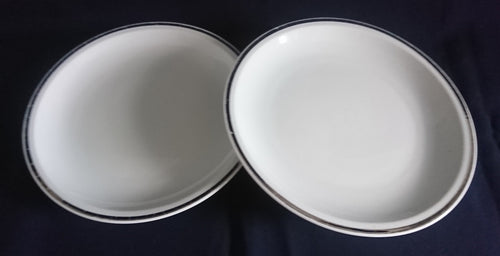 2er Set DESSERTTELLER - Porzellan, Silberrand Linien Dekor
