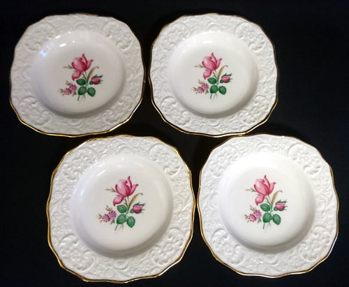 4er Set ABLAGETELLERCHEN - Porzellan, Rosen Motiv Goldrand Relief Dekor