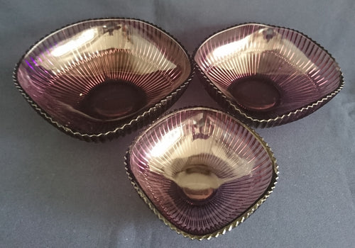 3er Set BEILAGENSCHÜSSELN - Hartglas, Linien Wölbungen Relief Motiv Dekor