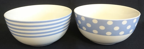 2er Set FRÜHSTÜCKS~ MÜSLISCHÜSSELN - Porzellan, Streifen Balken Linien Kreise Tupfen Punkte Motiv Dekor