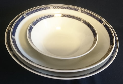 3er Set GROßE~ MITTLERE~ & KLEINE~ BEILAGENSCHÜSSEL - Porzellan, Abstrakt Linien Kreuze Goldrand Muster Motiv Dekor