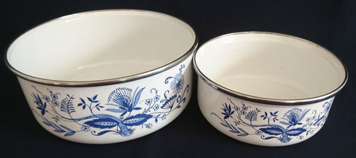 2er Set GROßE & KLEINE SCHÜSSEL - Metall / Emaile, Zwiebelmuster Motiv Silberrand Dekor