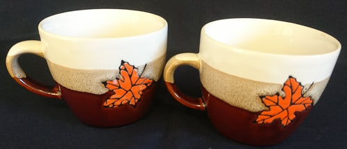 2er Set KAFFFETASSEN - Keramik / Steingut, Streifen Sandiger Punkte Ahornblatt Motiv Dekor