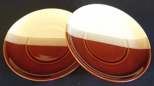 2er Set UNTERTASSEN - Keramik / Steingut, Streifen Sandiger Punkte Motiv Dekor