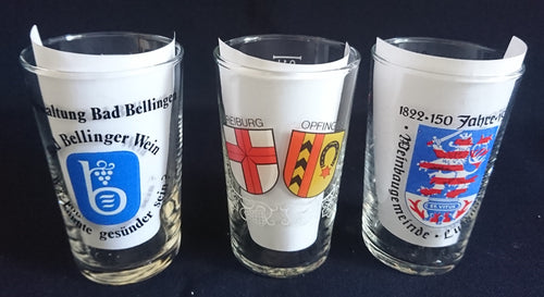3er Set Schnaps~ Shotgläser - Hartglas, Wappen Stadt Ort Aufschrift Motiv Dekor
