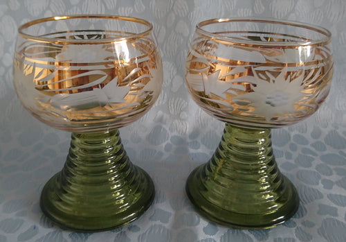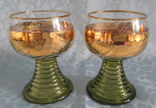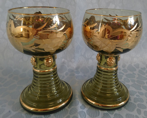 2er Set ANDENKEN RÖMERGLÄSER "Frankfurt am Main" - Press- / Hartglas, Trauben Blätter Goldklumpen Goldrand Aufschrift Dekor