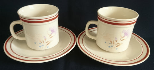 2er KAFFEEGEDECK - Keramik / Steingut, Blumenblüten Pflanzen Flora Linien Rand Motiv Dekor