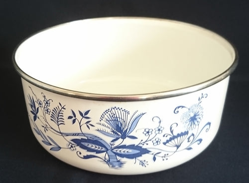GROßE SCHÜSSEL - Metall / Emaile, Zwiebelmuster Motiv Silberrand Dekor