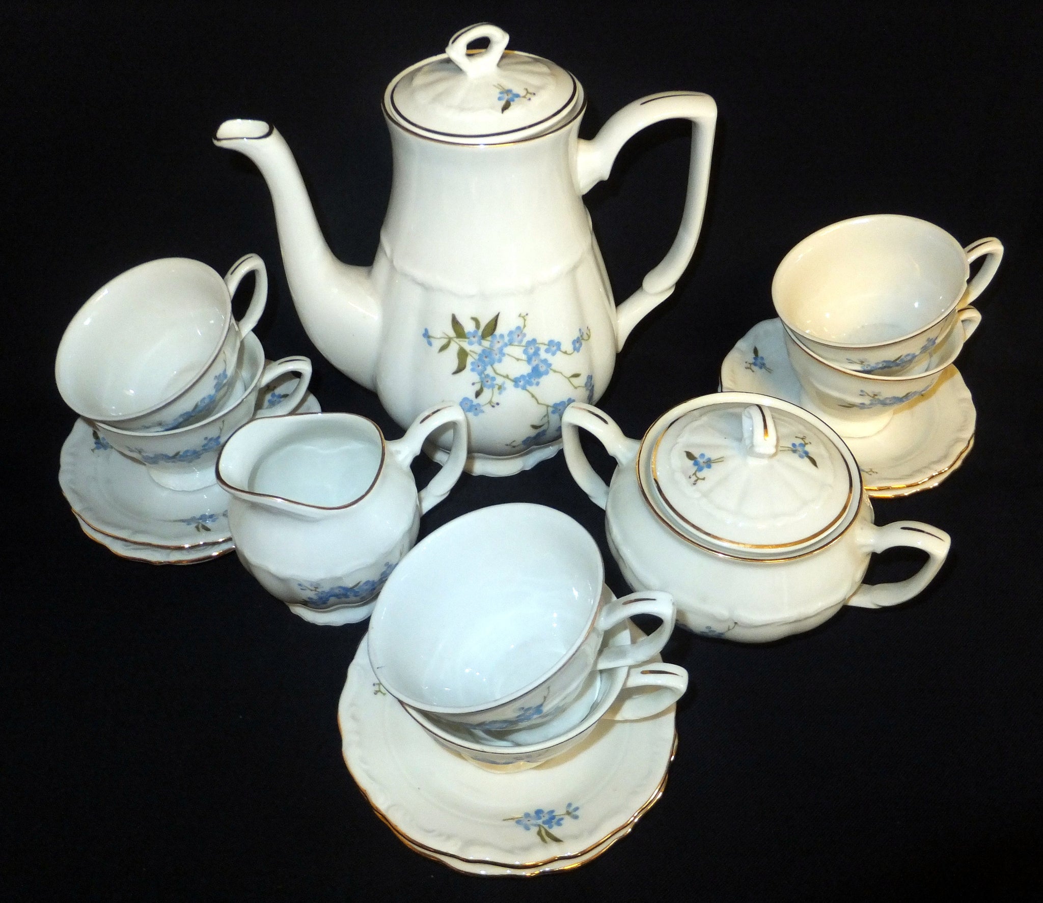 - Goldrand Vergiss mein Nicht Blumenblüten Flora Pflanzen Gewölbter Relief Motiv Dekor