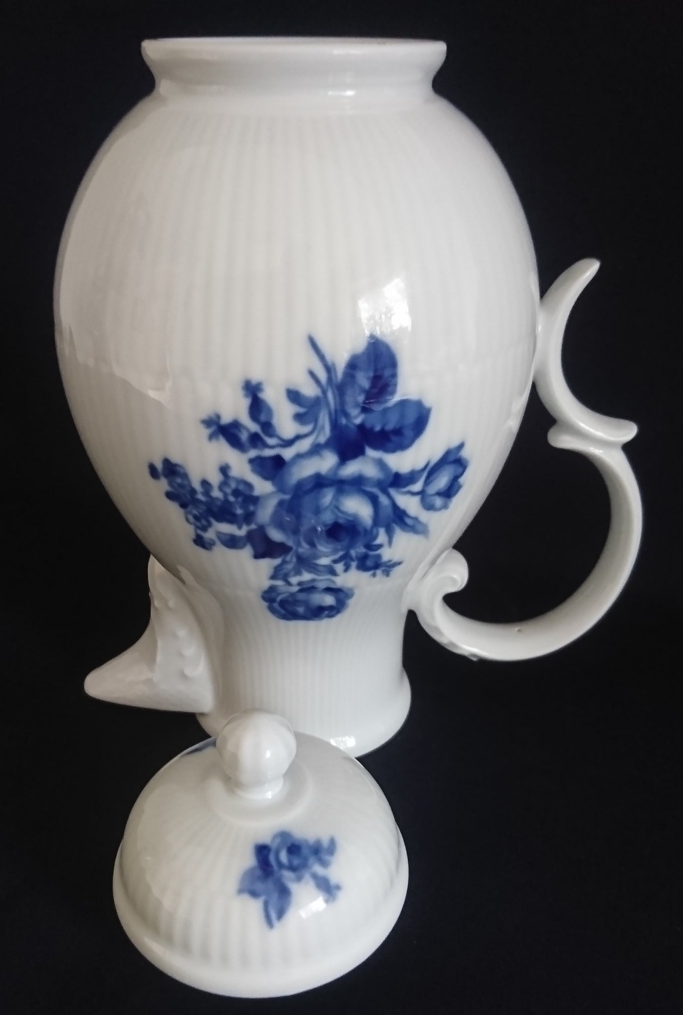 - Kobalt Flora Rosenblumen Blüten Blatt Blätter Striche Linien Relief Motiv Dekor