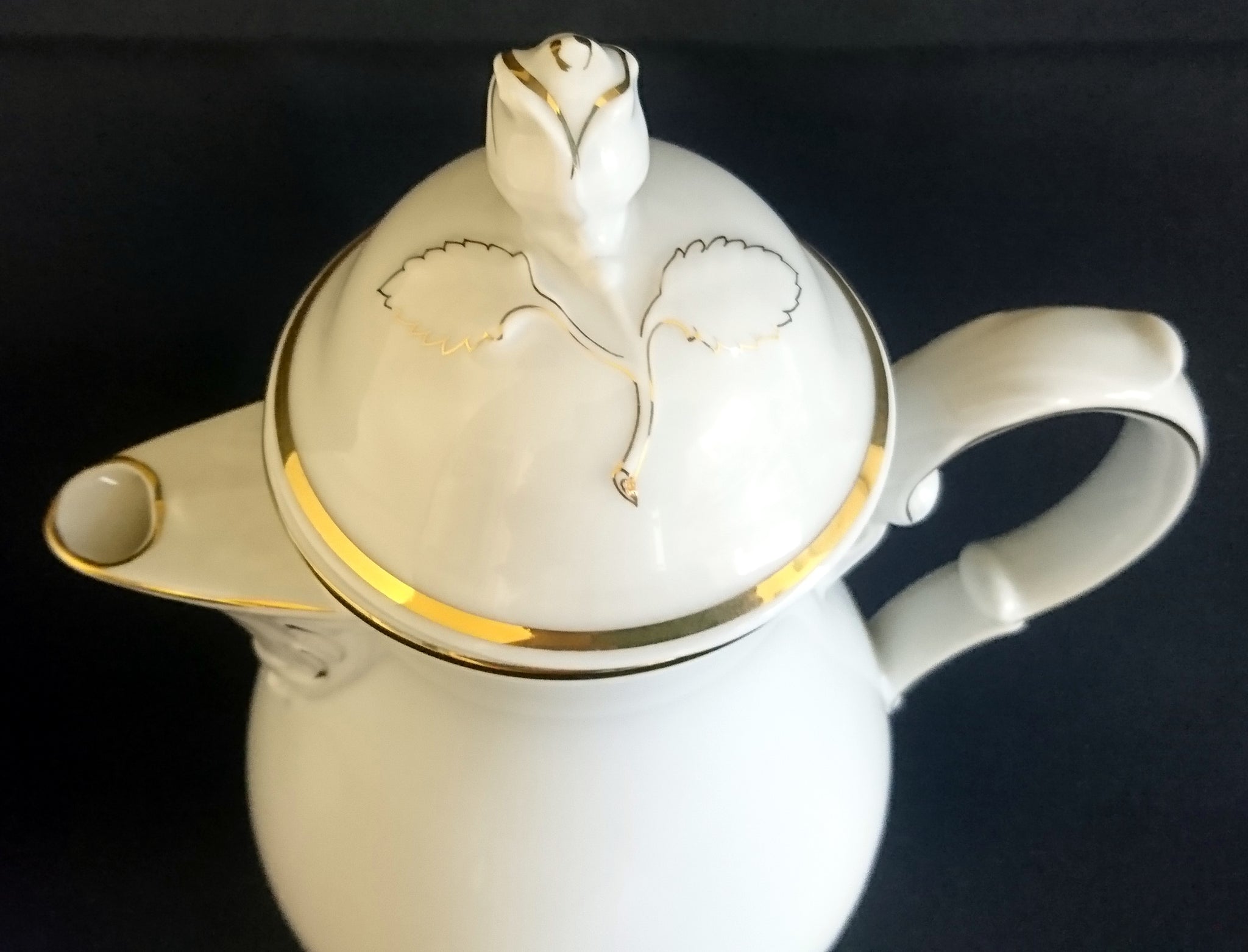 - Goldrand Linien Blatt Blätter Rosenblüte Relief Form Motiv Dekor