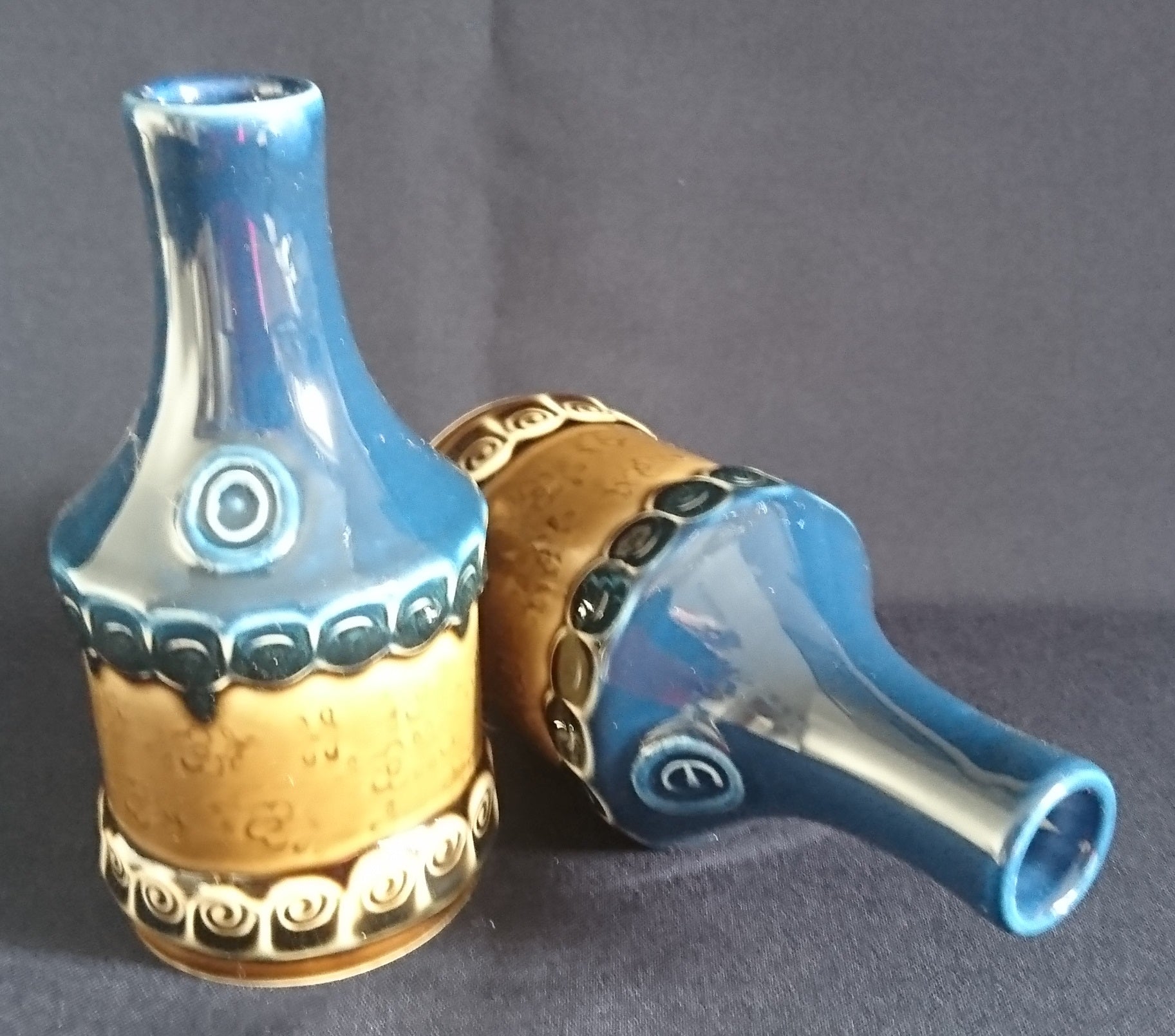 ÖL FLÄSCHCHEN OHNE VERSCHLUß "Brotzeit" "Studio Linie" - Keramik / Steingut, Antikes Abstraktes Kreise Striche Blüten Motiv Dekor, Bjön Wiinblad Design (BC)