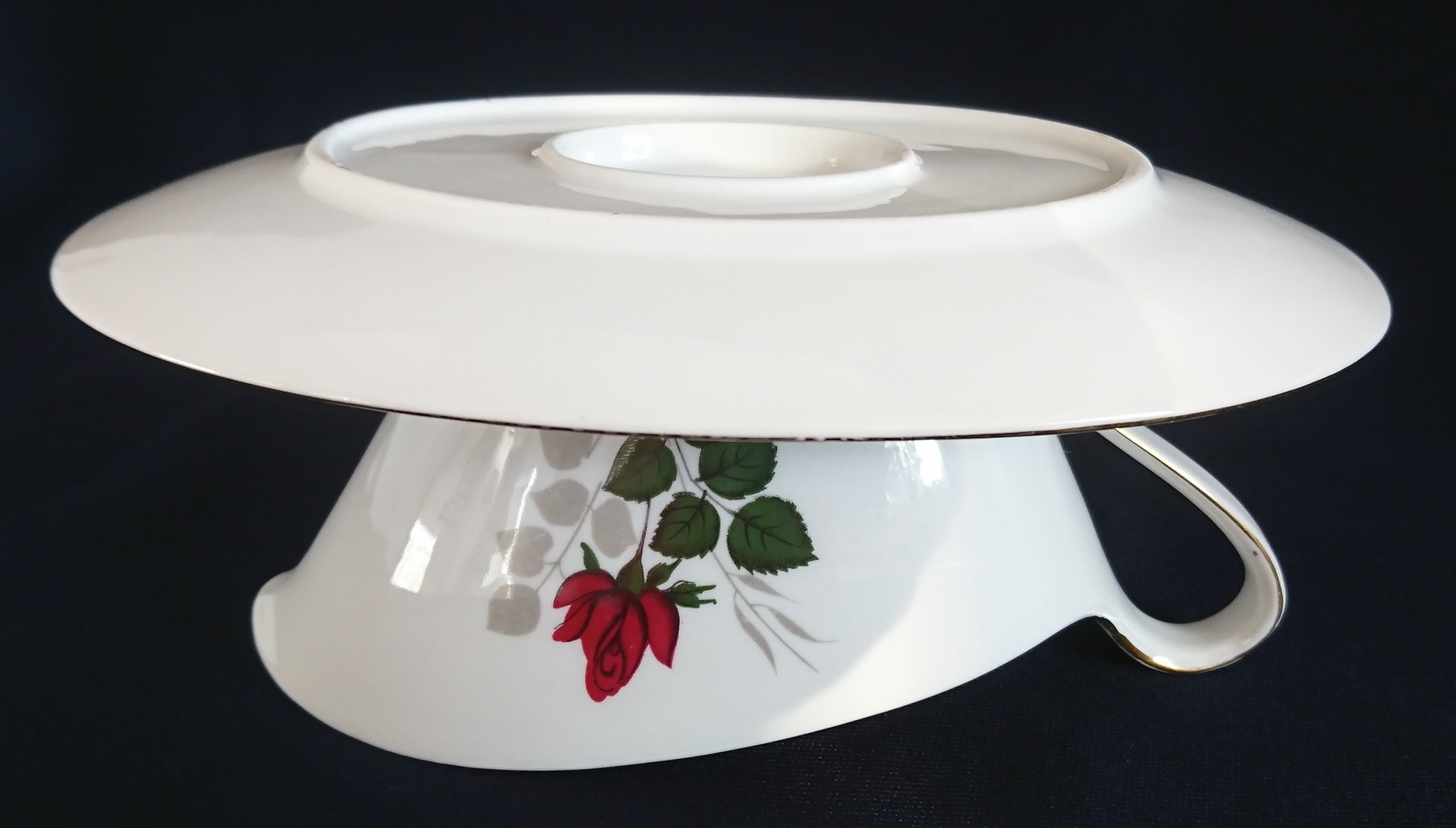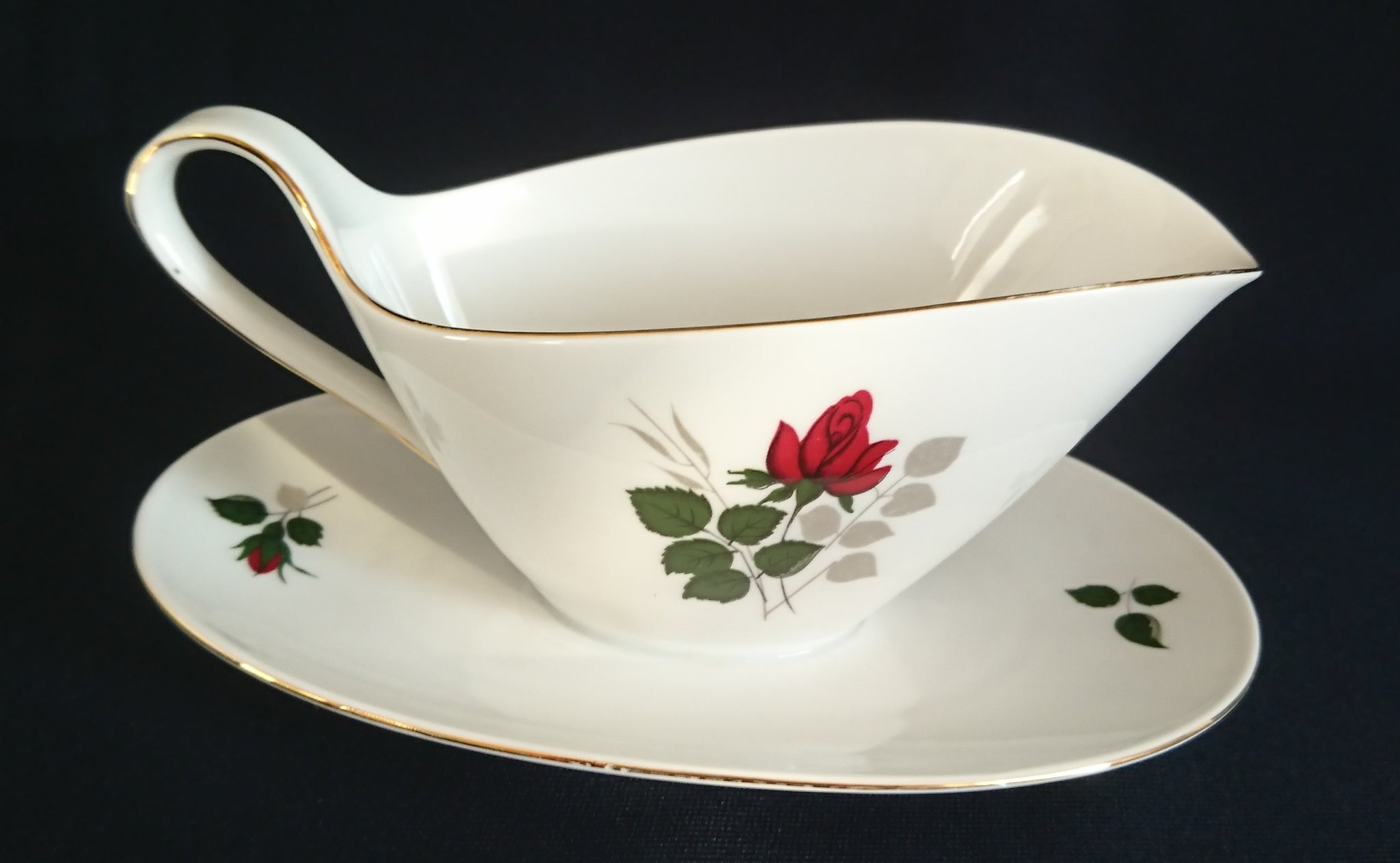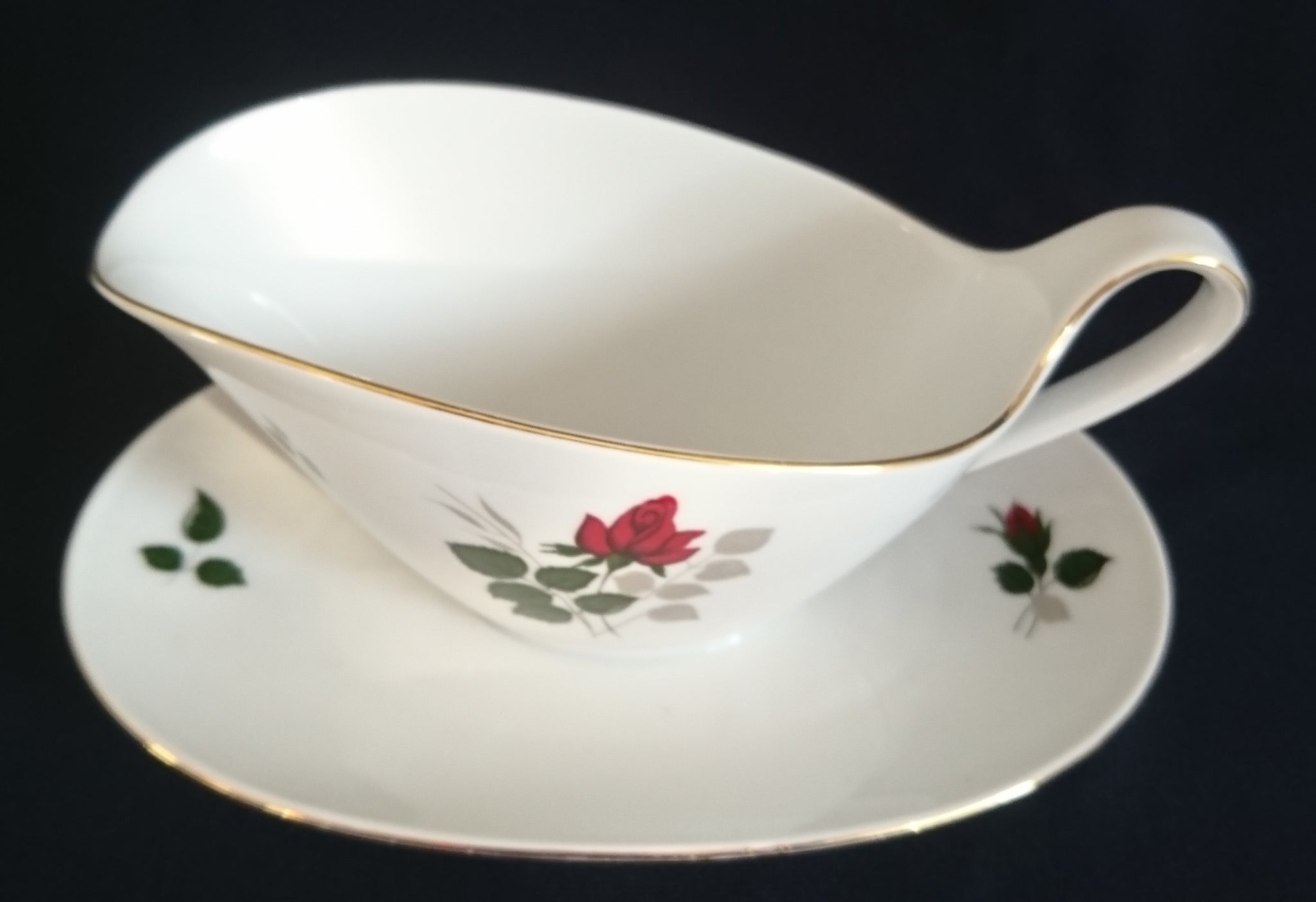 - Flora Rosenblumen Blüten Blatt Blätter Goldrand Motiv Dekor