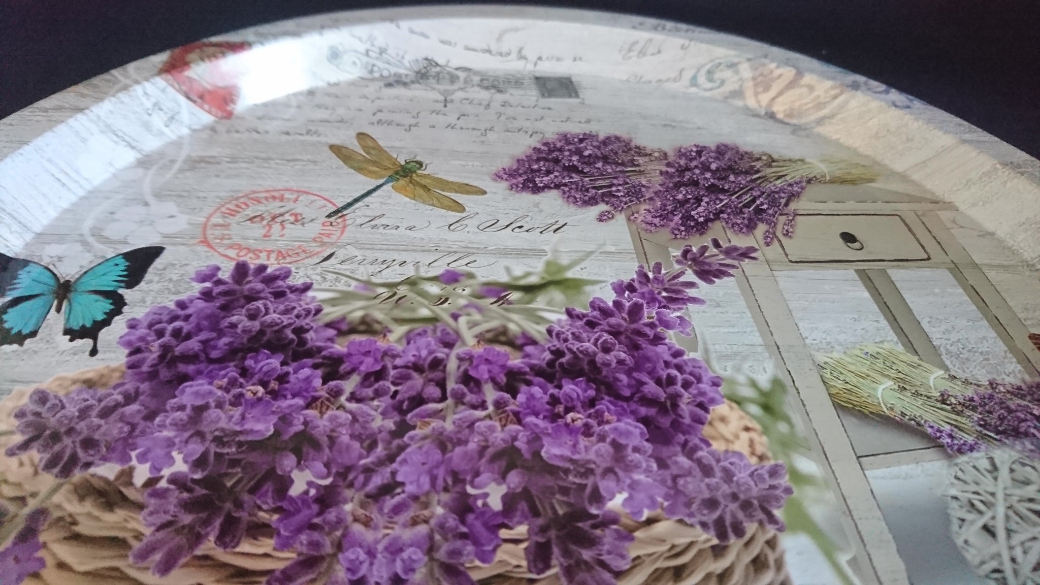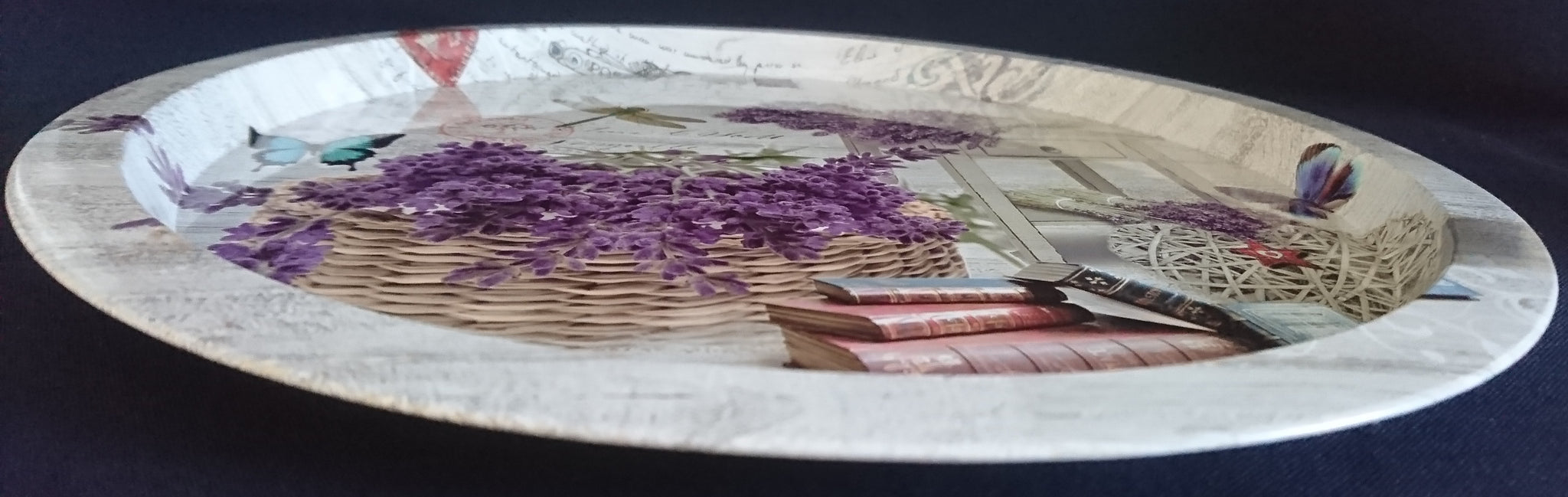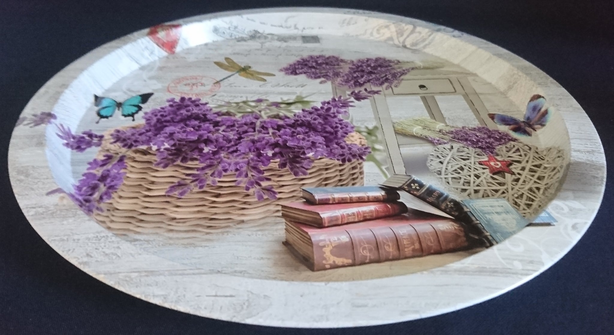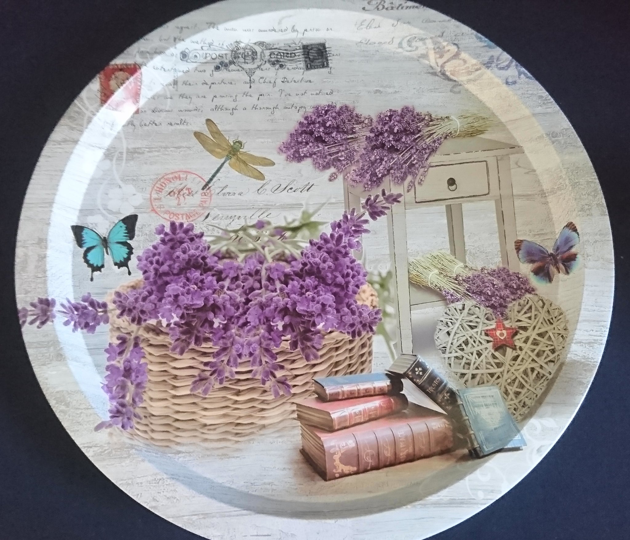 - Lavendel Korb Buch Bücher Aufschrift Motiv Dekor